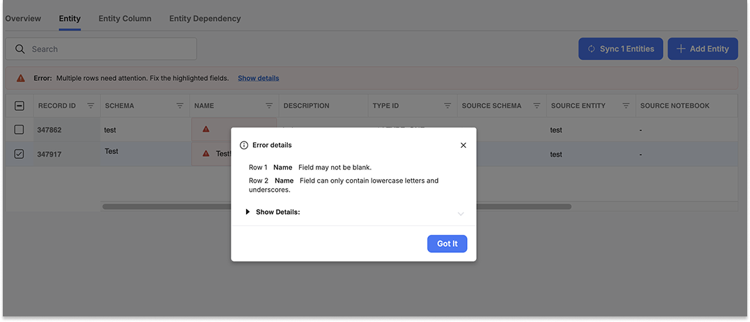 - Modeling Enhancements: Added Overview Page Cards; introduced Error Message Banner for real-time validation in editable grid views; updated Entity Sync button location; expanded Global Search to include Entity and Entity Column pages.