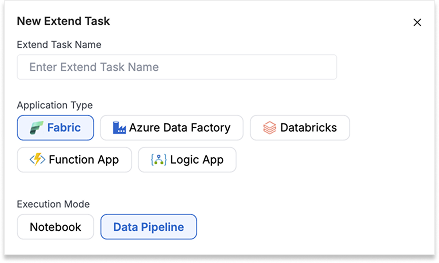 - Extend Tasks UI Updates: Removed Advanced Options from all Extend types except Databricks Notebook; updated form fields for ADF and Logic Apps; added secret management and flow model field updates; improved metric card routing.