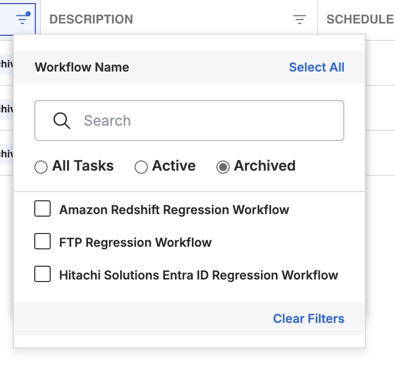 You can also filter for Archived tags by clicking on the filter icon on the Workflow Name column.