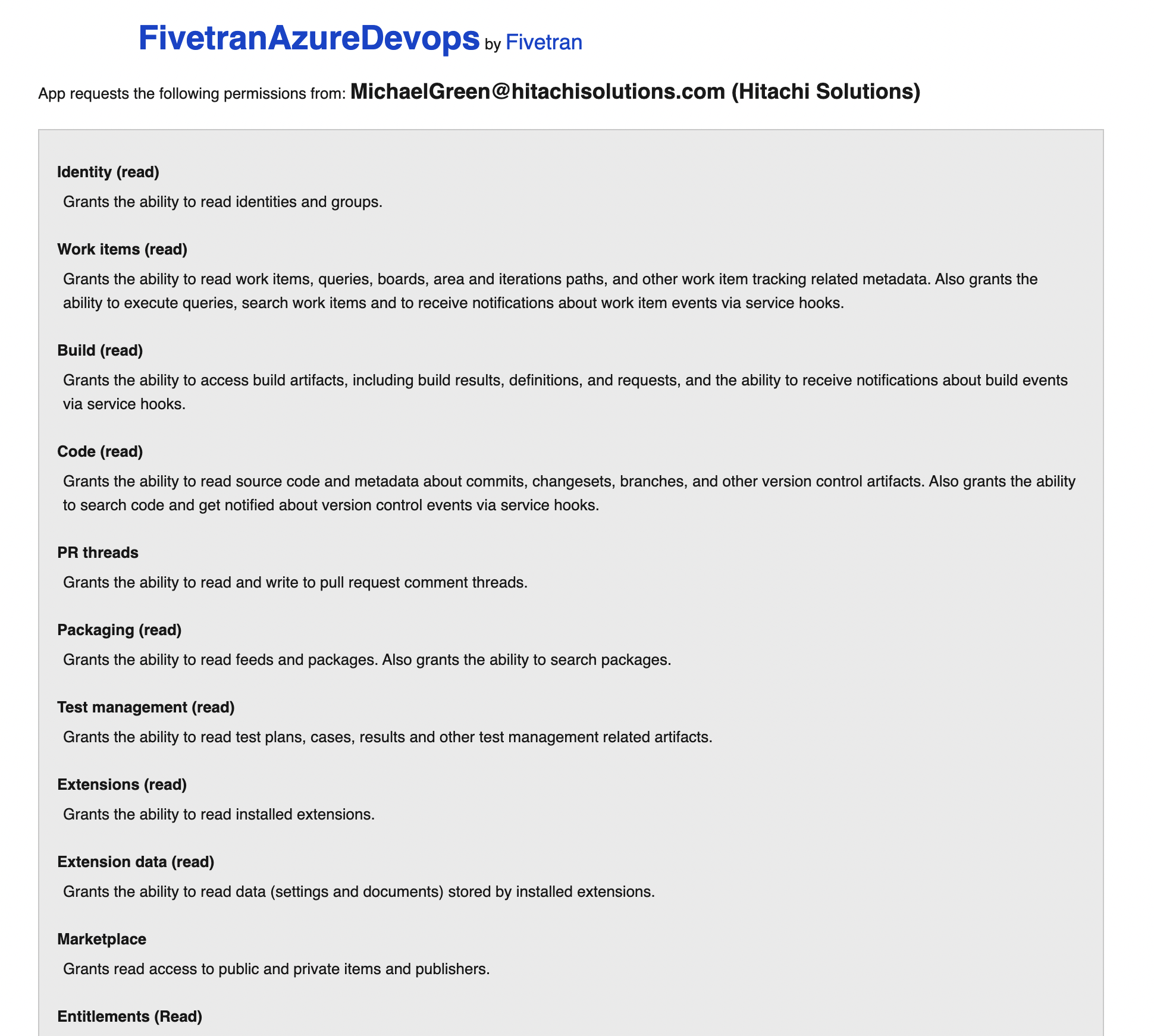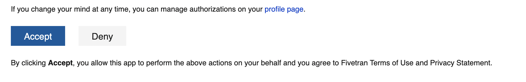 After filling out required fields and clicking Authorize, you may be taken to a grants page. Accept the requested permissions to enable this connector to sync data into your Lakehouse.